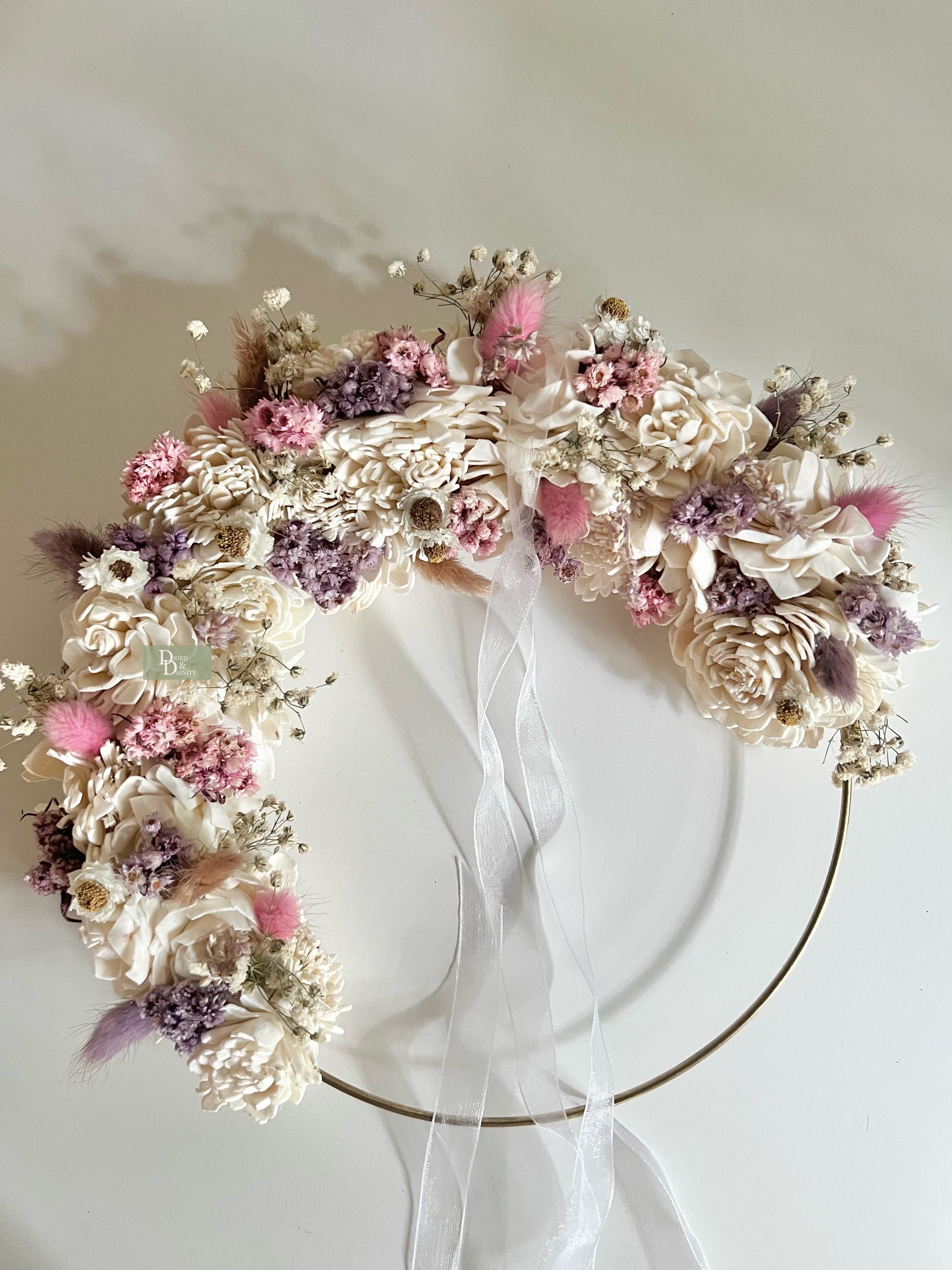 Soft, romantic, and everlasting—our Pink & Lavender Dried Sola & Flower Wreath is handcrafted with premium sola wood flowers and naturally dried botanicals. The delicate blush pink tones blend beautifully with soothing lavender accents, creating an elegant piece for weddings, décor, or gifting.